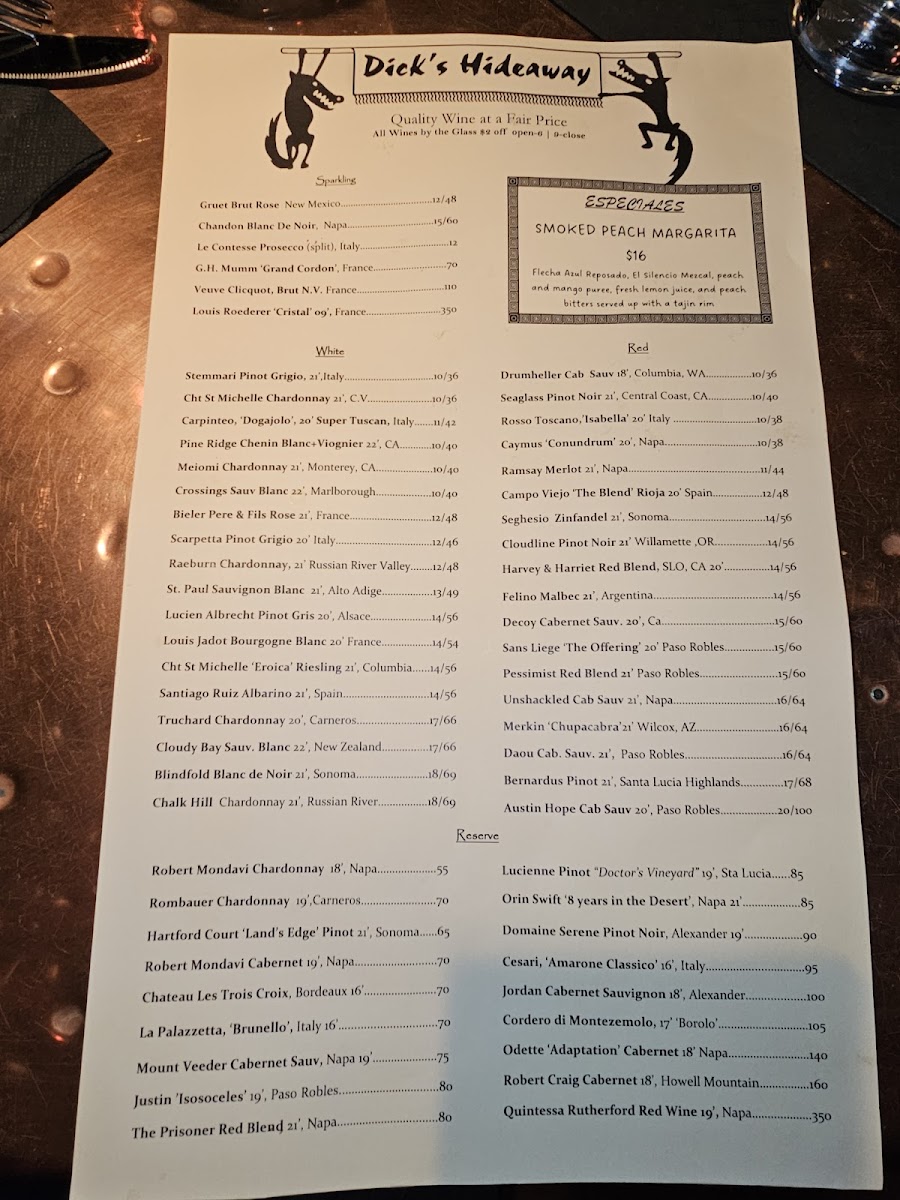 What truly sets Dick's Hideaway apart is its inviting service, described by many guests as warm and attentive. Patrons consistently note how the friendly staff make dining here memorable, recommending dishes and ensuring that your glass never runs empty. In the words of loyal customer Rustin Reidhead, “The food is tasty and the portions are huge,” a testament to the generous servings that enable you to savor every bite and perhaps even take leftovers home!